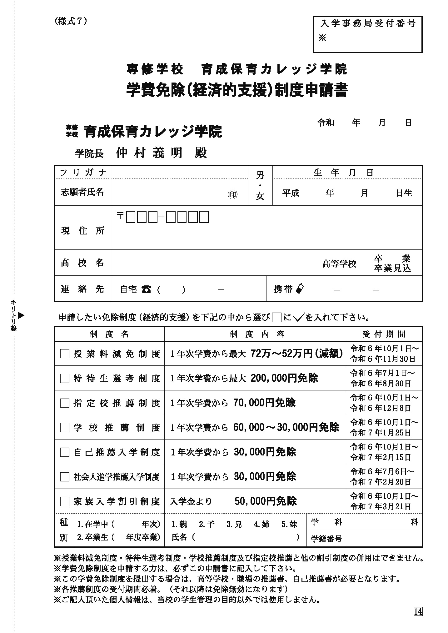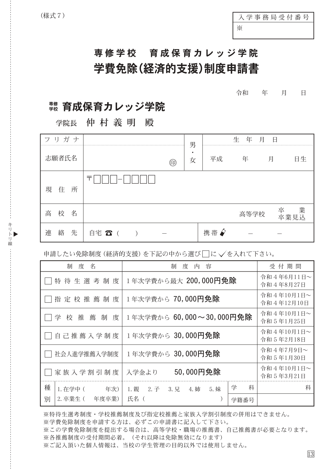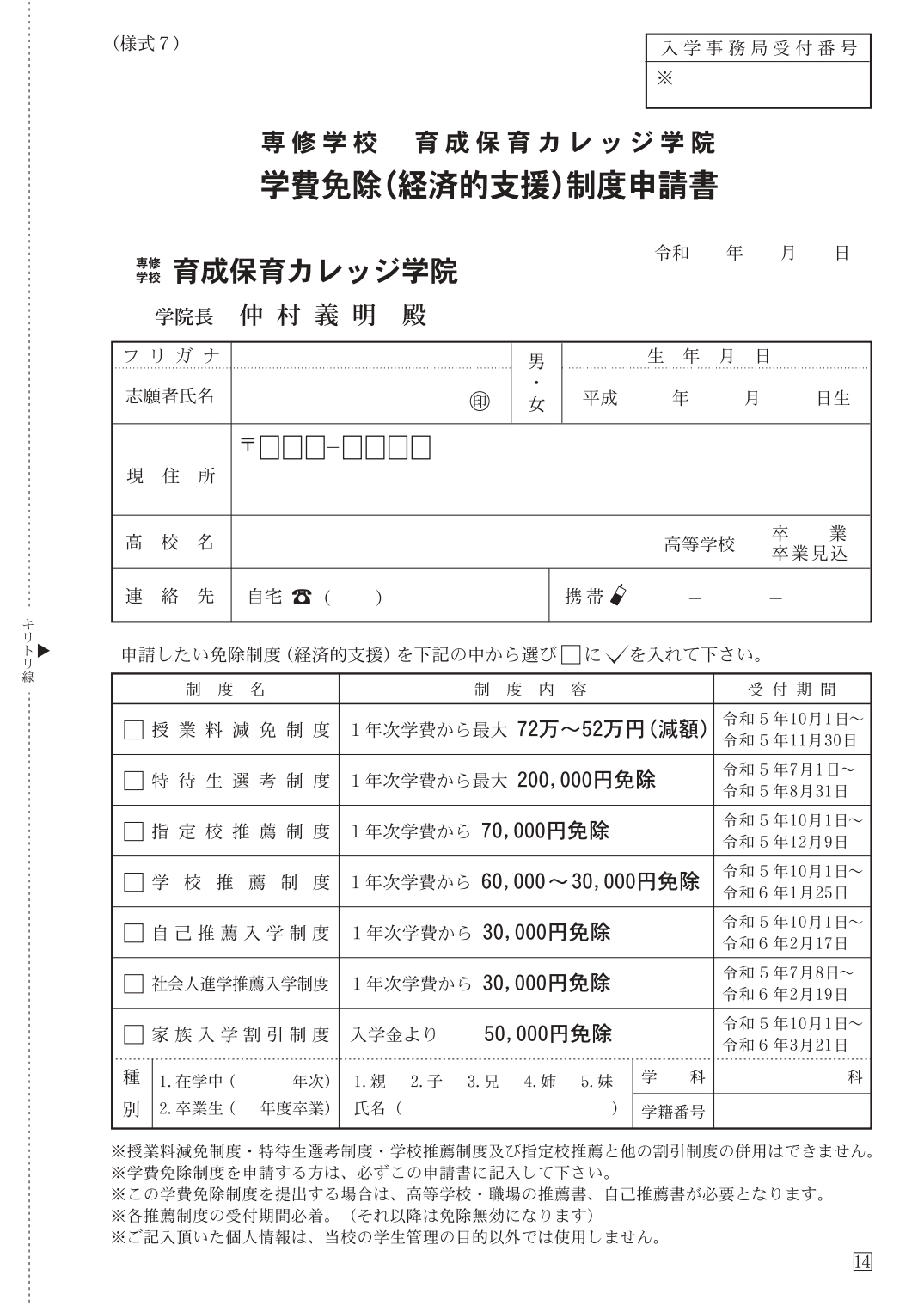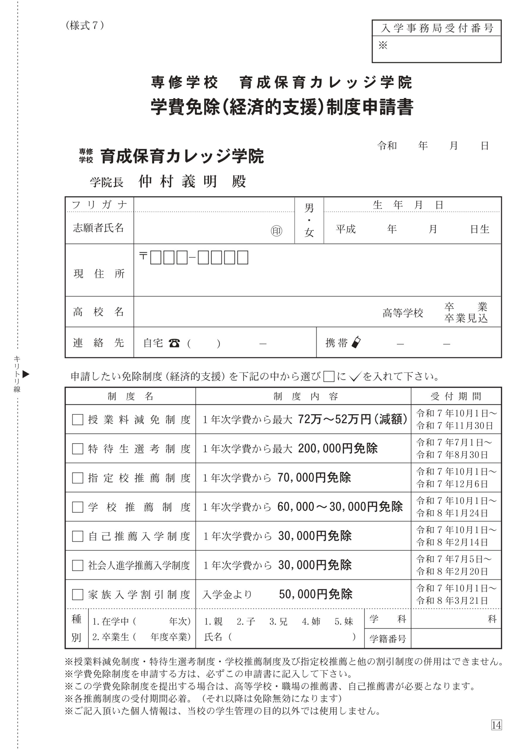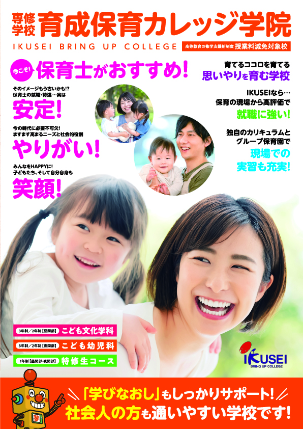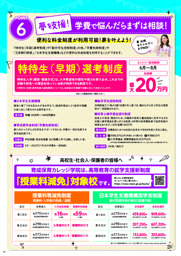 育成保育カレッジ学院は国(文科省)が認定する授業料減免制度認定校です。