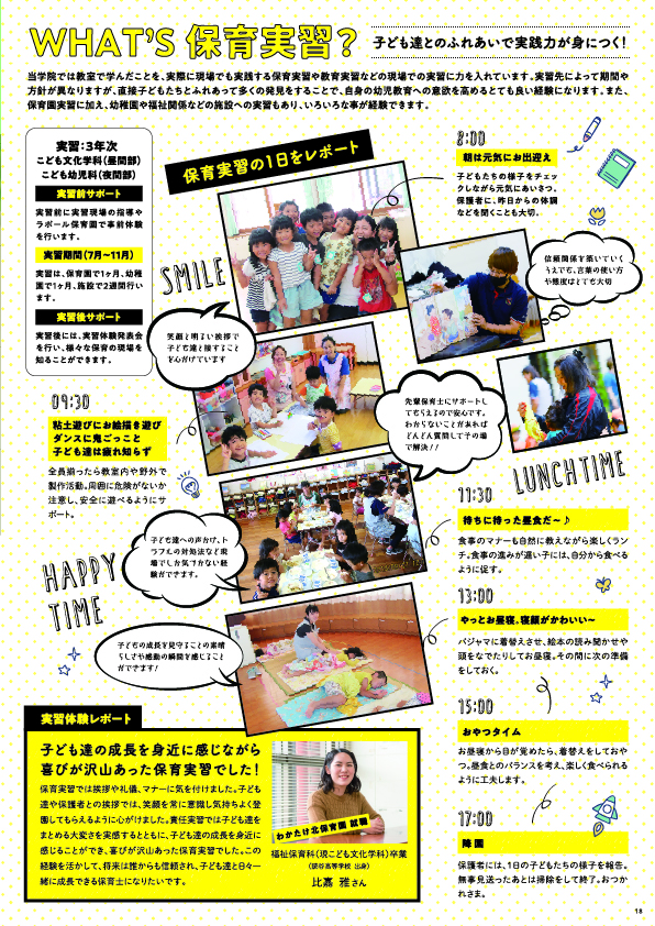 紙芝居作りなど、保育の授業が充実! 笑顔=元気、やる気につながる素晴らしい仕事です。