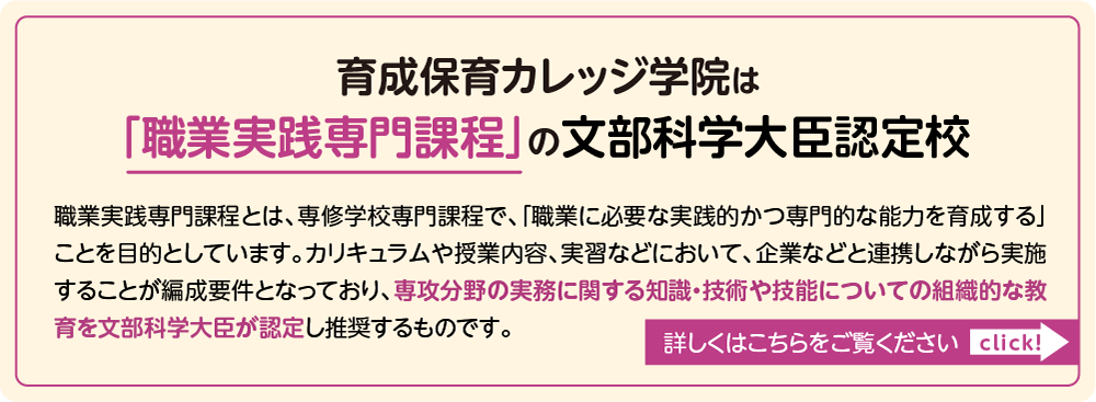 Copyright © 2009~ 専修学校 育成保育カレッジ学院.All Rights Reserved.