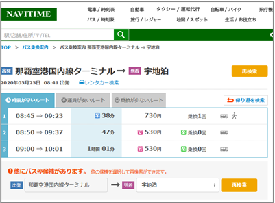 那覇空港のバス停(国内線ターミナル)から、育成保育カレッジ学院のあるバス停(宇地泊)へ到着するバス便を検索できます。(※スマートフォンの場合は会員登録が必要です)