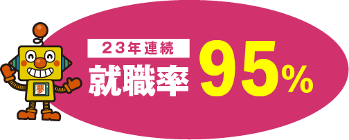 就職難のこの時代に、育成保育カレッジ学院では23年連続で就職率95%以上という大きな成果を上げています。長年の実績と優れた人材の育成によって、高い就職率を維持してきました。