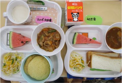 こども園での昼食体験会。子どもの年齢やアレルギー体質に合わせたメニューの細かさに驚きます。