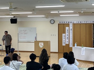 当認定こども園で6月15日(土)は、講師の音楽家、作曲家の伊波興奨氏による「魔法のアイコンタクト」というテーマで子育てを通しての内容で深い講演でした。