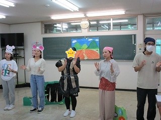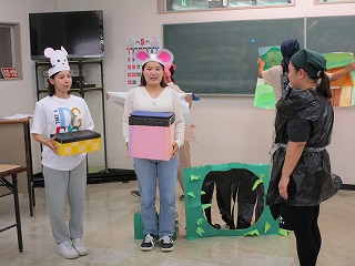 各グループごとに学生が脚本を考え衣装や場面を作り、ぞれぞれの役に扮して演じました。学生達の達成感が最高にステキでした(^^♪
