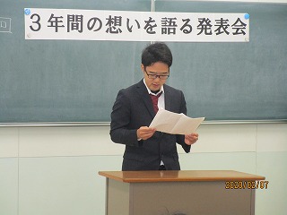 2月7日(金)は当学院の3年次の代表より1年次へ送るメッセージとして3年間の学校生活や実習体験など色々なお話をしていただきました。