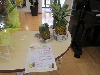 8/4(火)に沖縄県農林水産部流通加工推進部様より県内で採れたおいしいパインが届きました!!新型コロナウイルスの影響で保育園も感染拡大防止に努めている中で毎日が不安の園生活を送っています。朝の全体集会でも保育士が詳しく園児の前で話しをしました。最高のプレゼントを頂き、園児と職員で笑顔になりました。どうも有難うございました。