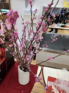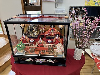 ひな人形、桃の花も準備し邪気を払いました。お昼にはおいしいちらし寿司もいただきました。