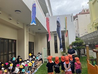 最近は、アパートやマンションに住んでいる家庭が多く、鯉のぼりを見る景色が少なくなりました。そこで園児と一緒に鯉のぼり掲揚式では子ども達は大喜びでした。😁😁😁