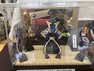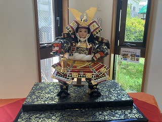 端午の節句に飾る兜(カブト)も玄関前に展示し男の子が健やか成長して欲しい!!