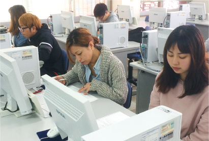プロの保育士を育てるために、施設や環境にも心を配っています。コンピュータを使った事務作業に対応できるようパソコン専用教室を設けたり、各学生が十分にピアノの練習ができるようピアノ教室が3カ所あるなど、職場(保育園・幼稚園)で本当に役立つ能力を育てる工夫がされています。