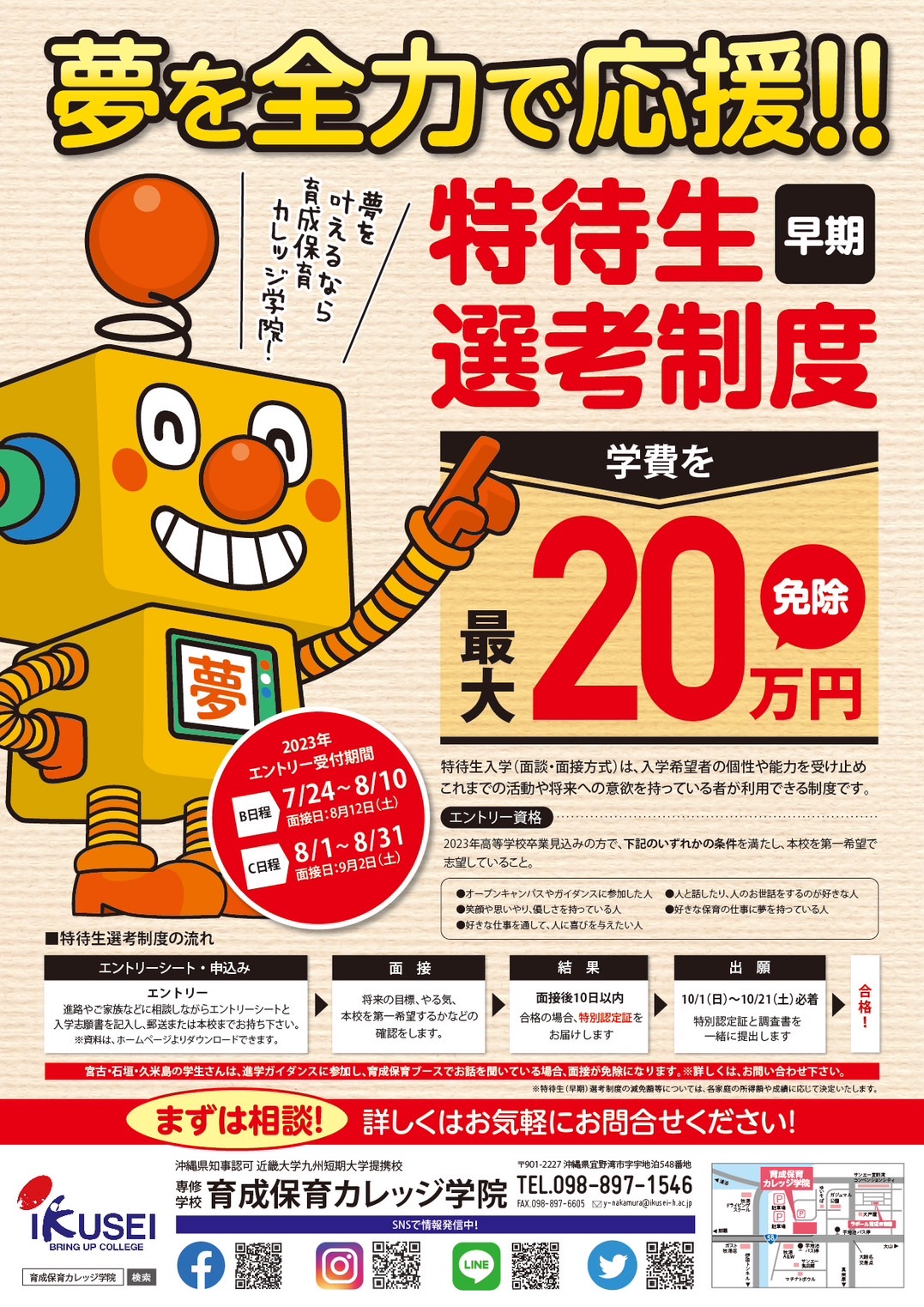 特待生選抜試験は、志願者の意欲・適正・能力を総合的に評価して、育成保育カレッジ学院の教育理念にもとづいて選考します。